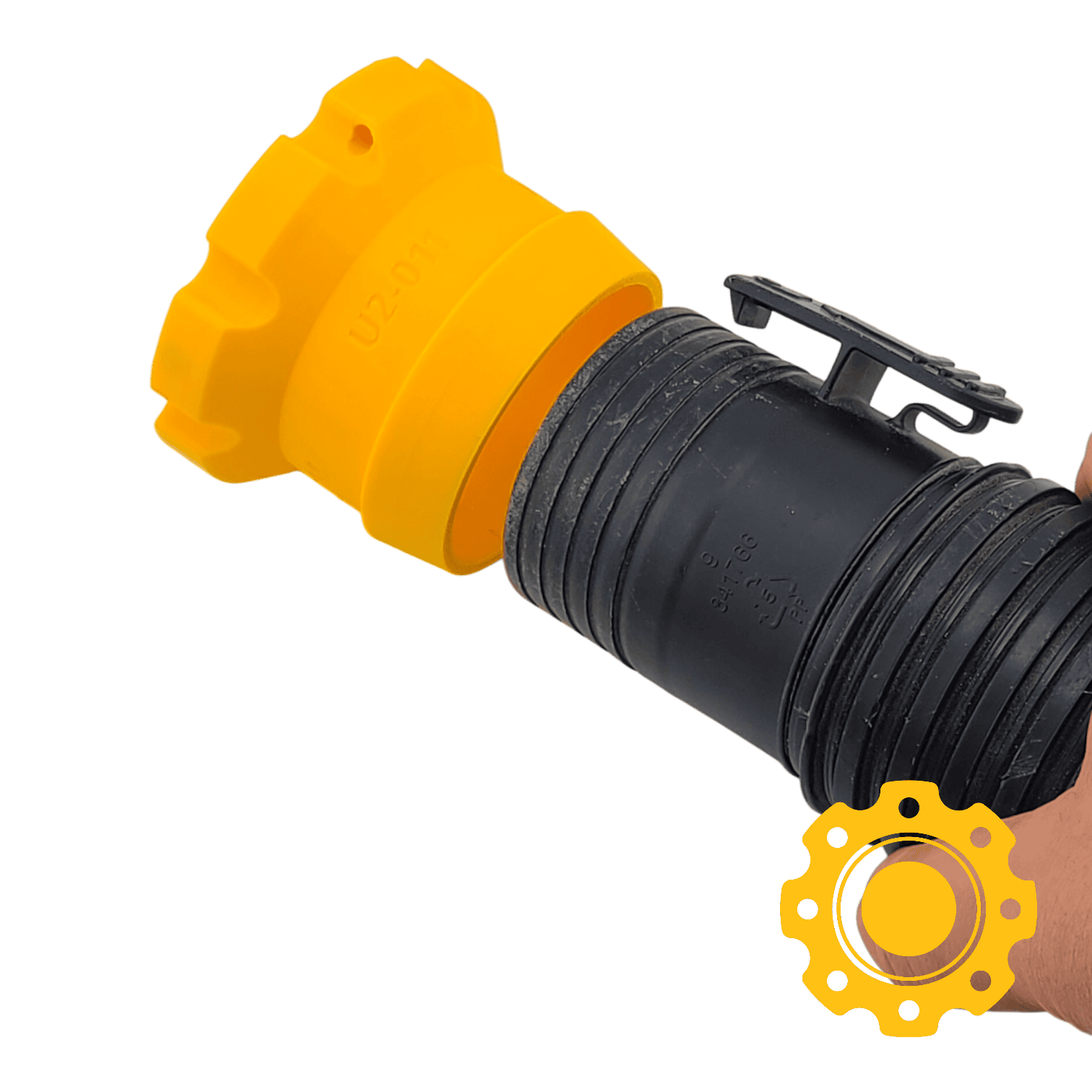 Push the hose into the adapter until the hook clips onto the flange and locks into place, then connect magnetically to other HoseJoy components.